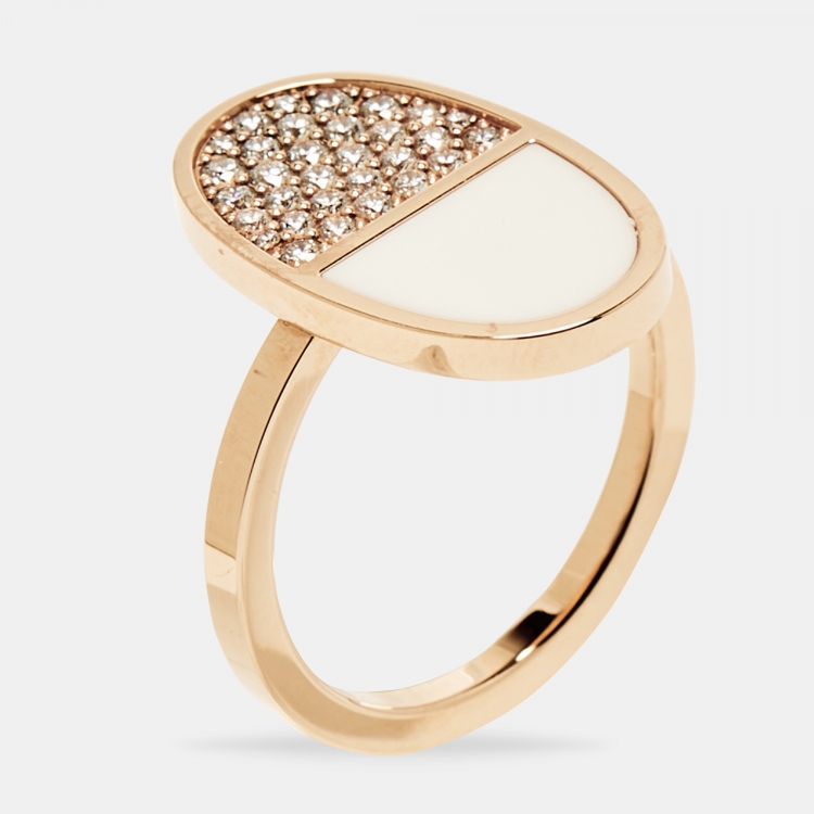 Pre Owned خاتم هيرمس شين دانكريه فيرسو سيراميك ألماس ذهب وردي عيار 18 مقاس 55