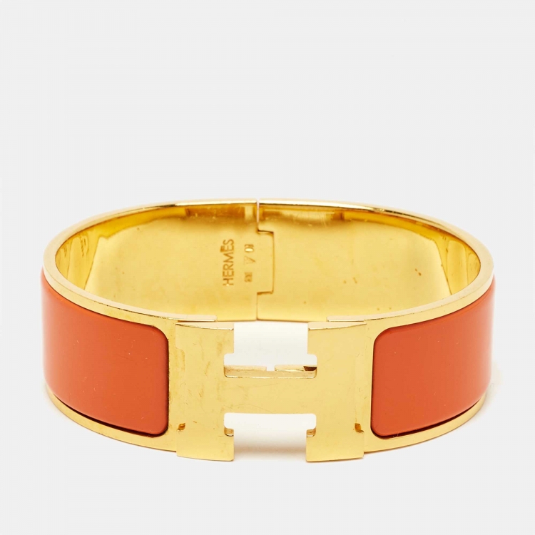 Pre Owned سوار هيرمس عريض كليك كلاك H مطلي بلاديوم إينميل برتقالي GM