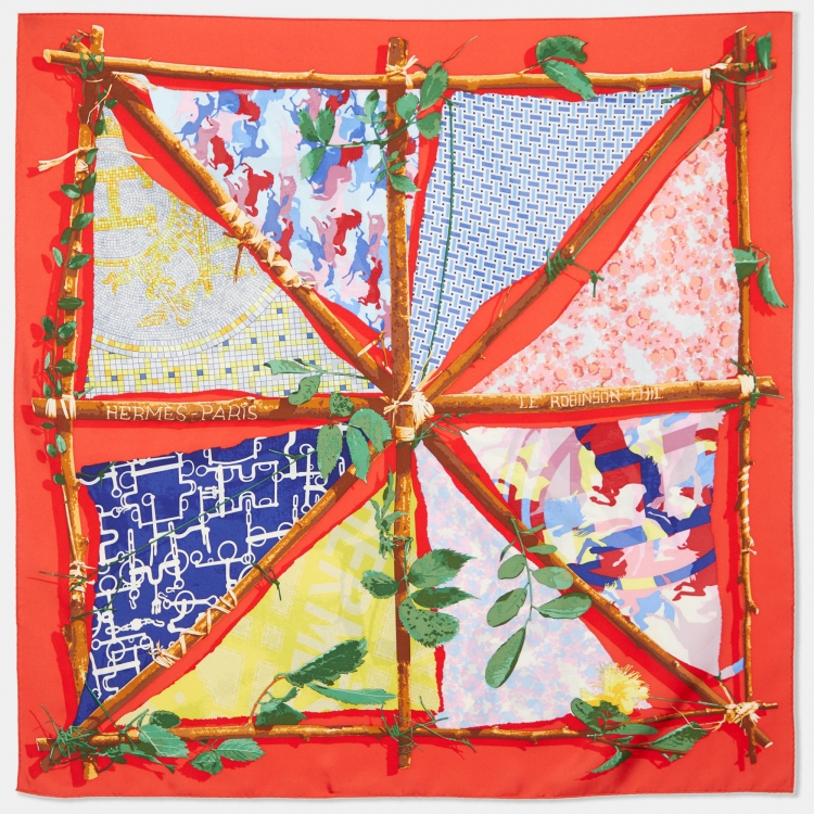 Hermès Red Le Robinson Chic Printed Silk Square Scarf