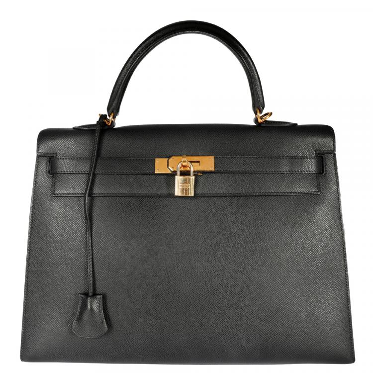 Hermes Black Epsom Leather Gold Hardware Kelly Sellier 35 Bag