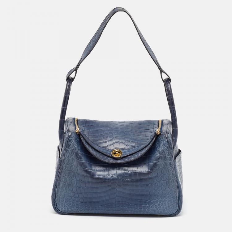 Hermes Blue Indigo Crocodile Niloticus Lindy 30 Bag