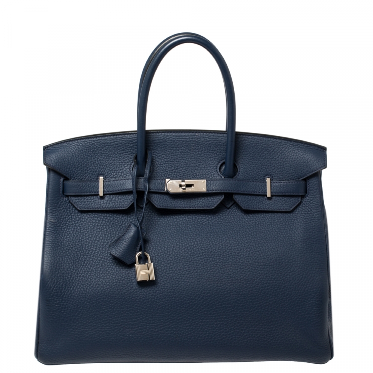 مم�لوكة مسبقًا حقيبة هيرمس بيركين 35 إكسسوار بالاديوم جلد كليمينس زفير زرقاس