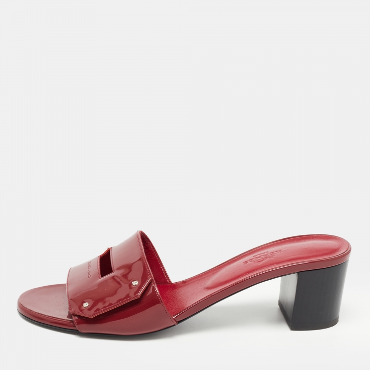 Hermes Burgundy Patent Leather View Slide Sandals Size 38.5