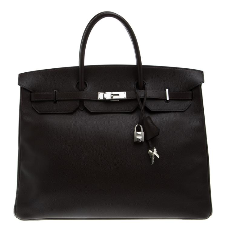 مملوكة مسبقًا حقيبة هيرمس بيركين إكسسوار بلاديوم جلد إبسوم كاكاو 40