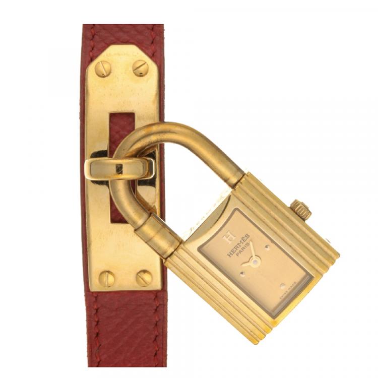 Hermes Champagne Gold Tone Stainless Steel Kelly KE1.210 Women's Wristwatch 20.5 MM