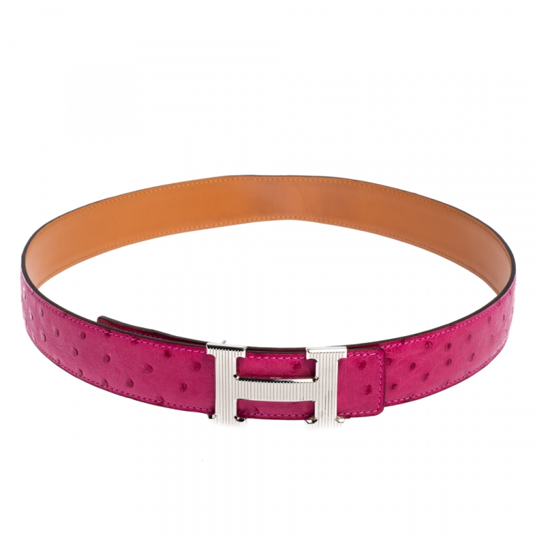 Pre Owned حزام هيرمس ذو وجهين إبزيم أتش ستري جلد نعام فوشيا 80 سم