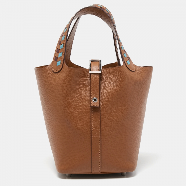Pre Owned Hermes Gold/Bleu Du Nord/Rouge H Epsom Leather Picotin Lock Tressage PM Bag