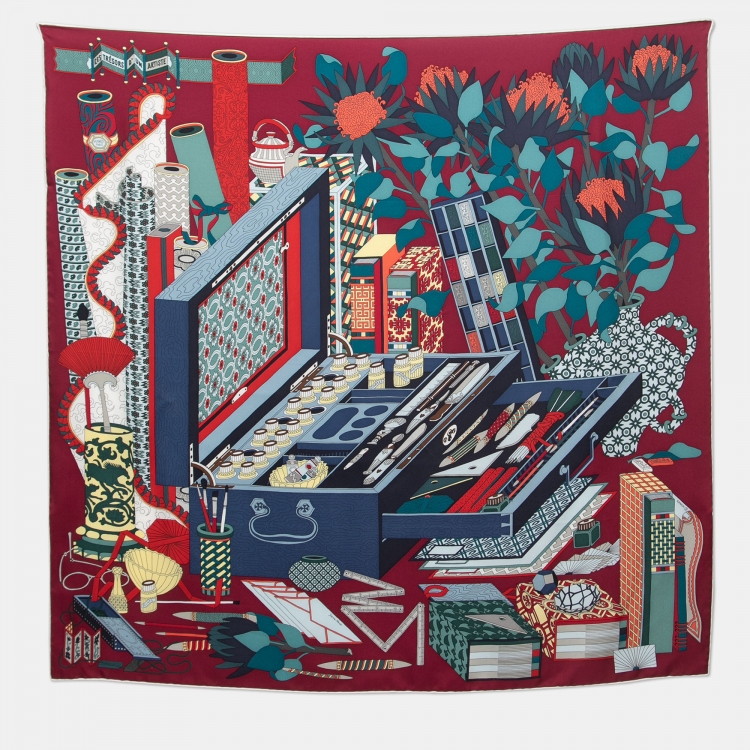 Hermes Multicolor Les Tresors D'un Artiste Printed Silk Square Scarf