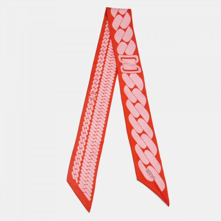 وشاح هيرمس حرير تويلي طباعة كليك سيه نوه برتقالي/وردي