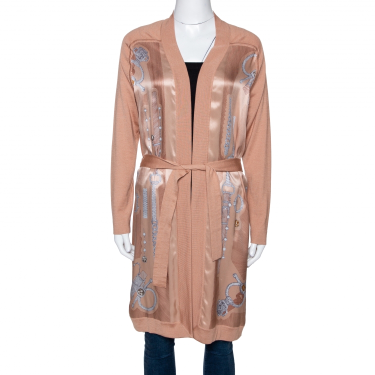 Pre Owned كارديغان هيرميس بارور دي غالا كشمير وحرير مطبوع خوخي بحزم مقاس صغير (سمول)