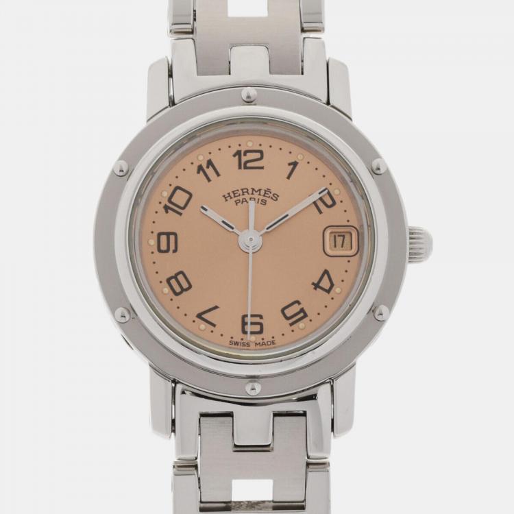 Pre Owned Hermes Pink Stainless Steel Clipper CL4.210 Quartz Women's Wristwatch 24 mm