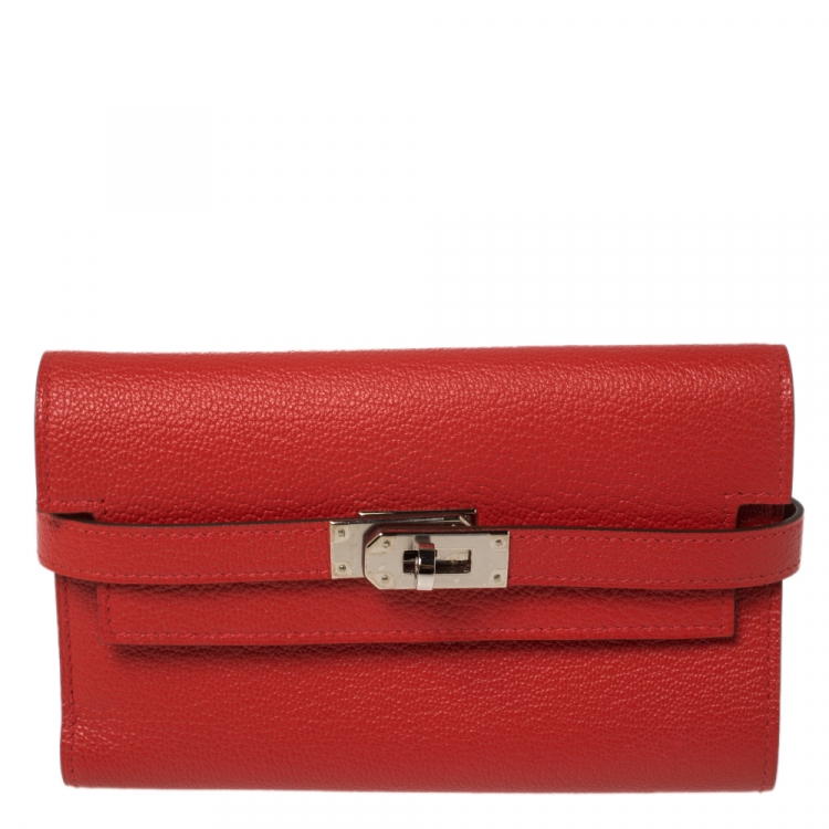 Hermes Rouge Casaque Evercolor Leather Kelly Depliant Medium Wallet