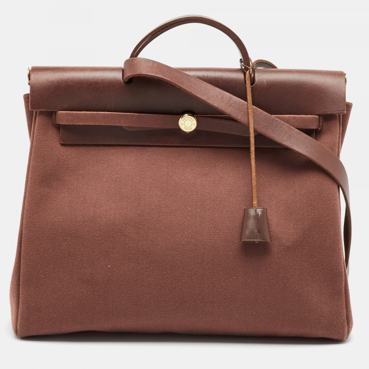 مملوكة مسبقًا حقيبة هيرمس هيرباغ زيب 39 جلد أسود /بني كاكاو وكانفاس