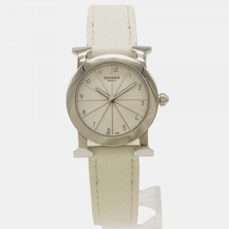 Hermes Silver Stainless Steel Heure H HR1.210 Quartz Women's Wristwatch 25 mm