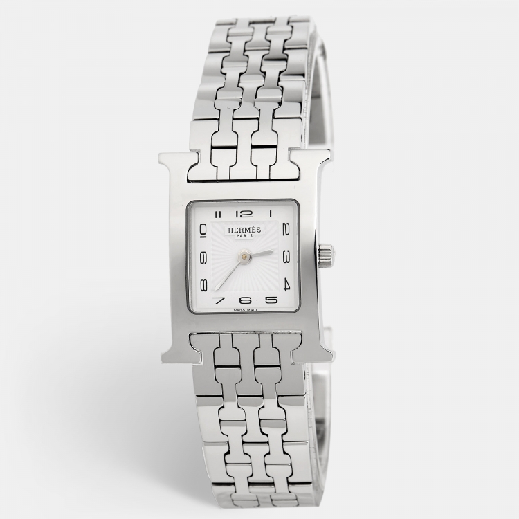 Pre Owned Hermes White Stainless Steel Heure H HH1.210 Women's Wristwatch 21 mm