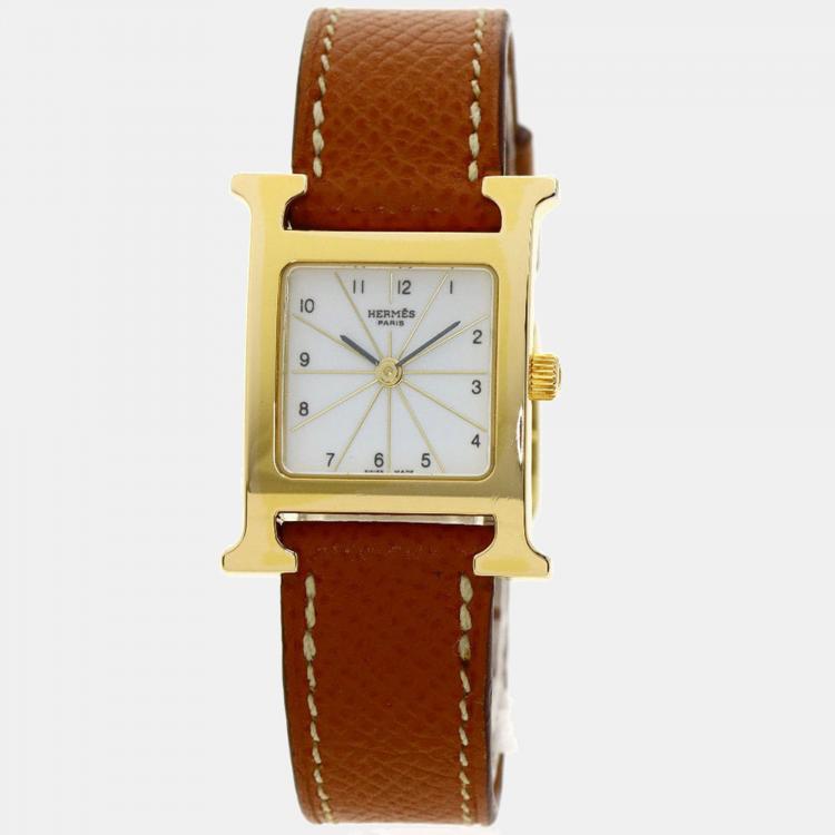 مملوكة مسبقًا Hermes White Yellow Gold Plated Stainless Steel Heure H HH1.201 Women's Wristwatch 21 mm