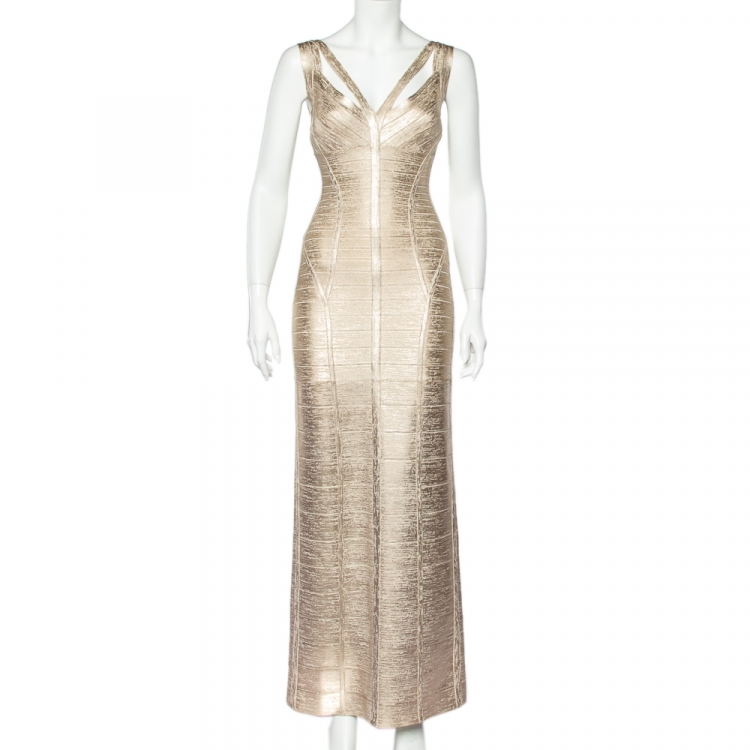 مملوكة مسبقًا فستان سهرة هيرفي ليجي بانديدج ألينيس بلا أكمام بيج نمط لامع مقاس متوسط - ميديوم