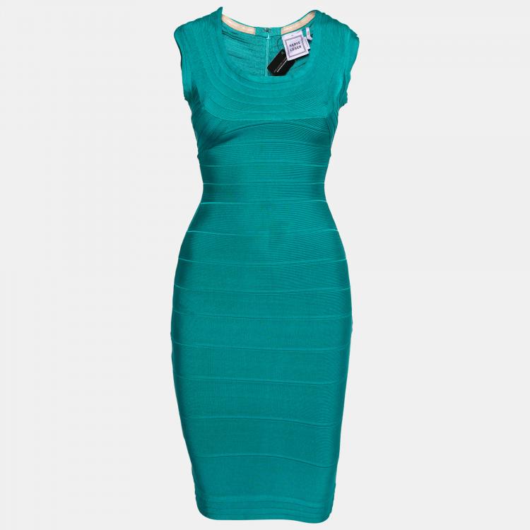 Pre Owned فستان هيرفي ليجي أخضر جيد بلا أكمام رقبة واسعة XS