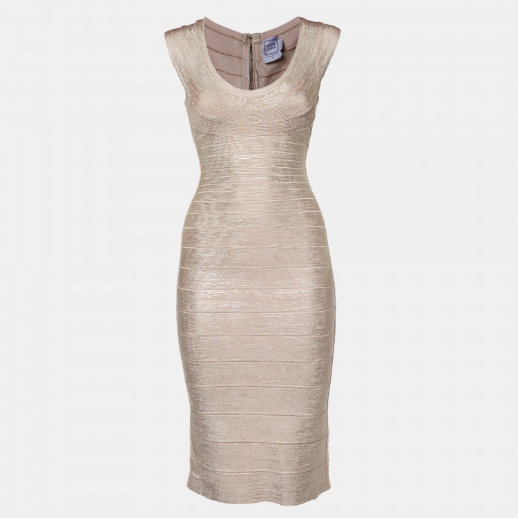 Pre Owned Herve Leger Metallic Pink Bandage Jersey Short Maira Dress S