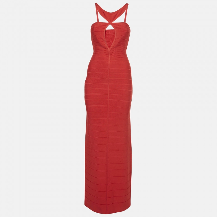 Pre Owned فستان هيرفي ليجي أحمر تريكو كلاريسا باندج ماكسي مقاس صغير جداً - اكس سمول