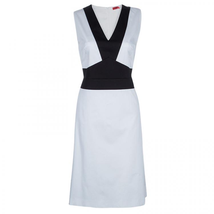 Pre Owned فستان هوغو باي هوغو بوس مونوكرومي بلا أكمام L