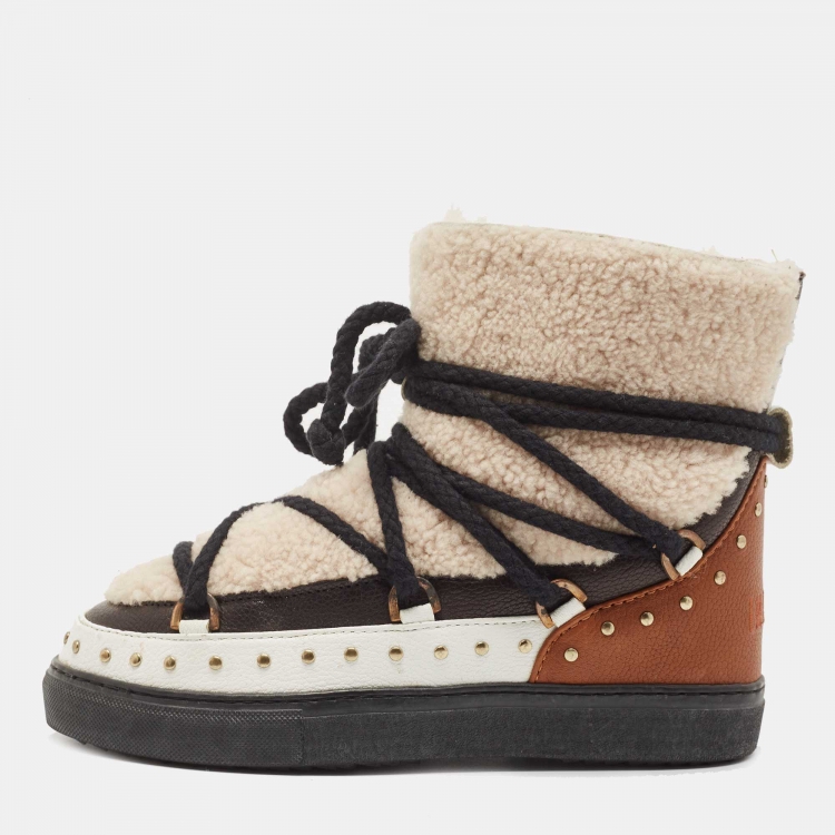 Pre Owned Inuikii Multicolor Leather and Fur Curly Rock High Top Sneakers Size 38