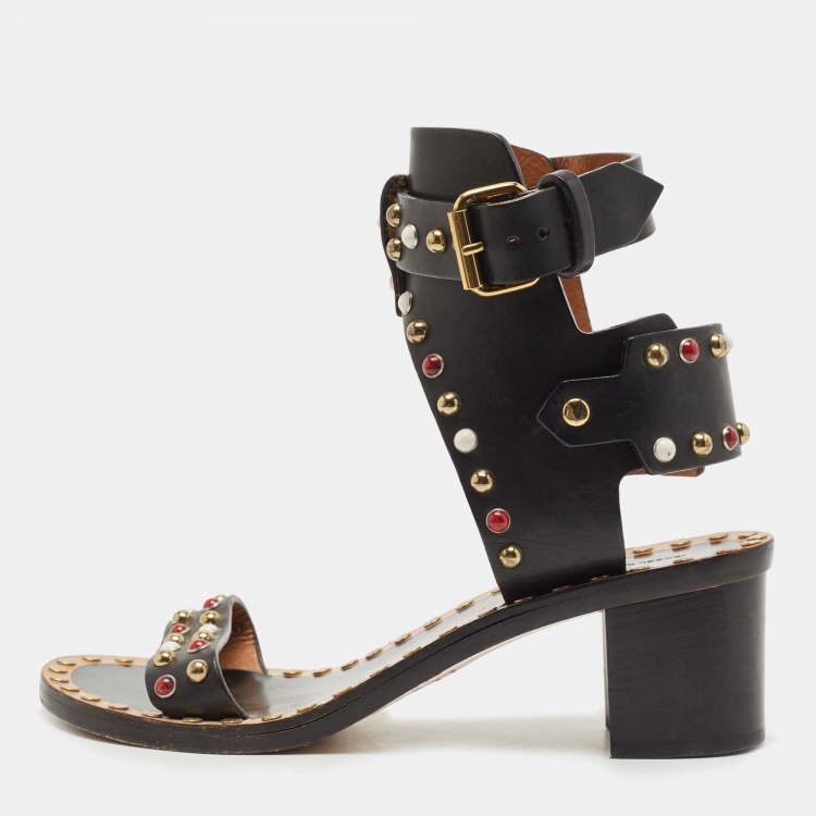 Pre Owned Isabel Marant Black Leather Jaeryn Ankle Strap Sandals Size 40