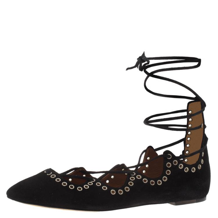 فلات باليه إيزابيل مارانت أربطة حلقات ليو سويدي أسود مقاس 37