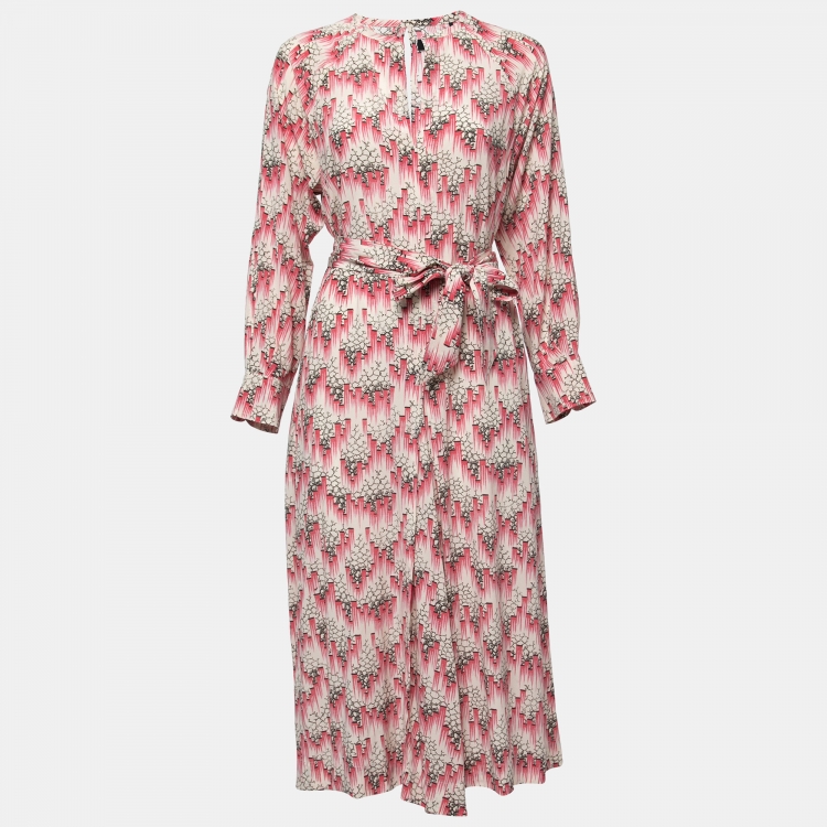 Pre Owned Isabel Marant Pink/Cream Printed Silk Blend Crepe De Chine Midi Dress S