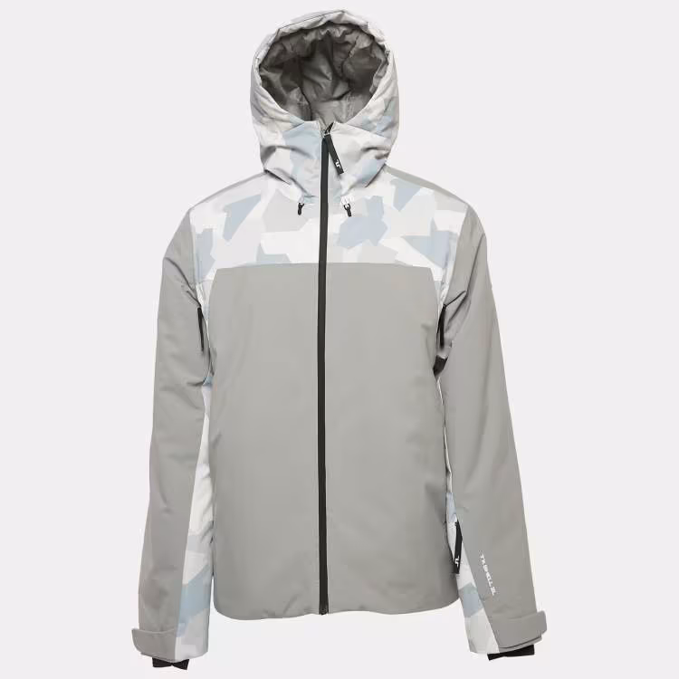 جاكيت جاي منديل تزلج رمادي صناعي بسحاب وقبعة بيس شامب مقاس وسط (ميديوم)