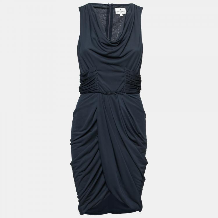 فستان جي. مندل خصر مزين ديرابية قصير حرير جيرسية أزرق كحلي M