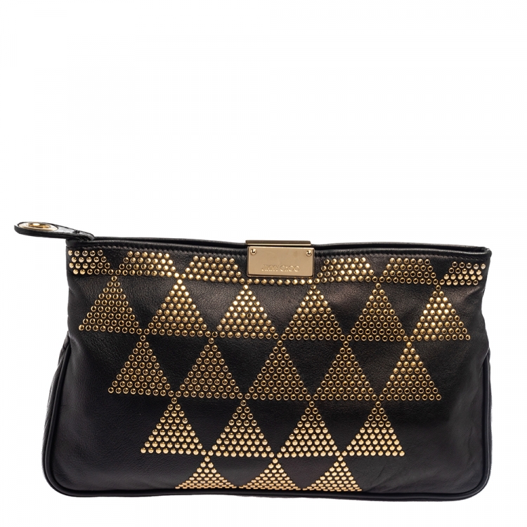 حقيبة كلتش جيمي تشو زولو جلد أسود مرصعة