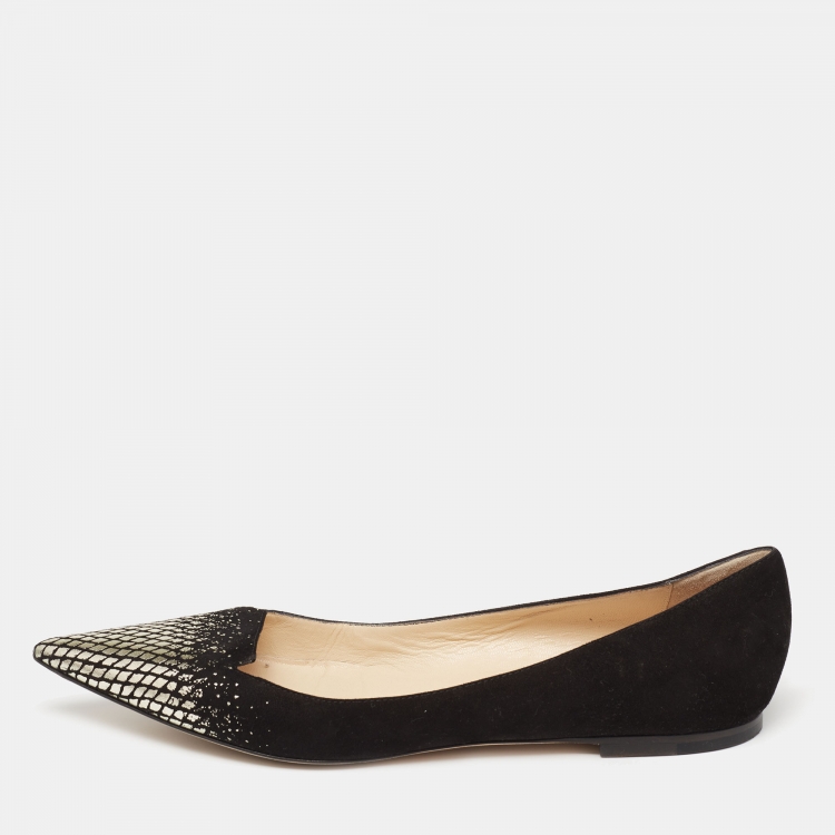 Pre Owned حذاء باليرينا فلات جيمي تشو أتيلا سويدي أسود مقاس 42