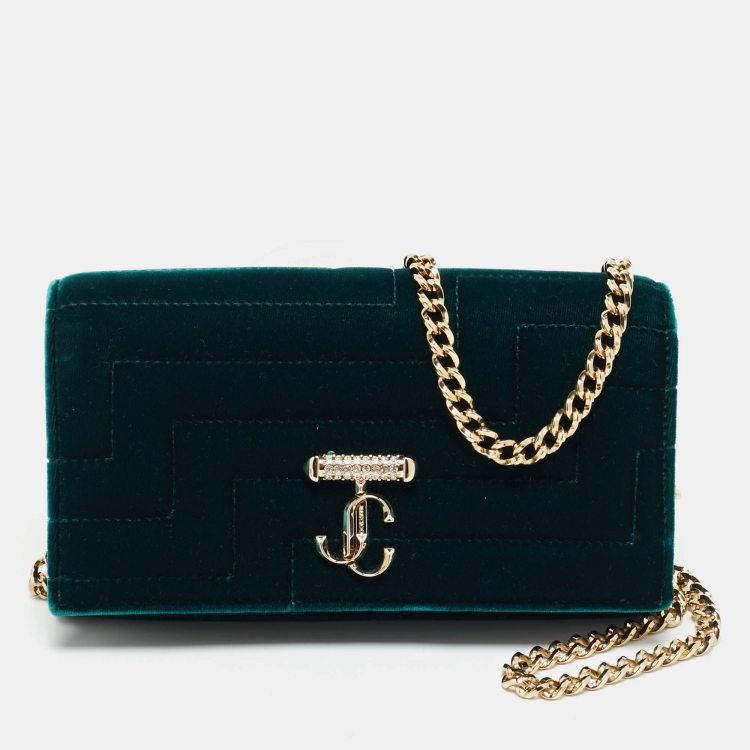 مملوكة مسبقًا محفظة جيمي تشو أفينيو فيلفت مبطن أخضر داكن على سلسلة