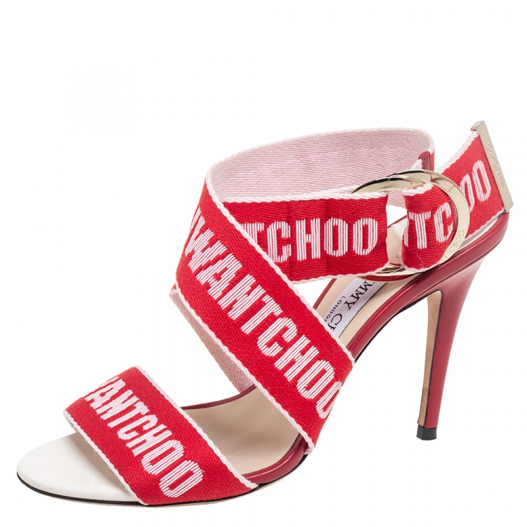 صندل جيمي تشو ملتف حول الكاحل بايلي كانفاس أحمر مقاس 37.5
