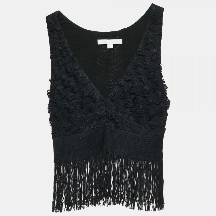 Pre Owned توب جوناثان سيمخاي جيرسي أسود بدون أكمام مزين بشراشيب صغير جداً