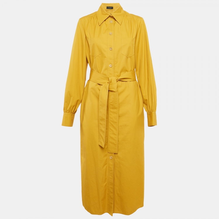 مملوكة مسبقًا فستان جوزيف قطن أصفر بحزام طويل مقاس كبير