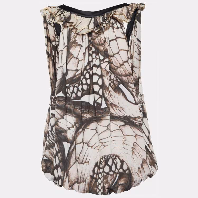 Pre Owned قميص جست كافالي جيرسي بني مطبوع مقاس كبير (لارج)