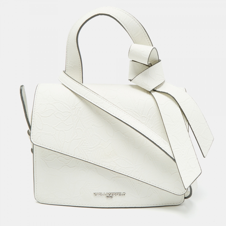 Karl Lagerfeld White Lace Print Leather Chantelle Top Handle Bag