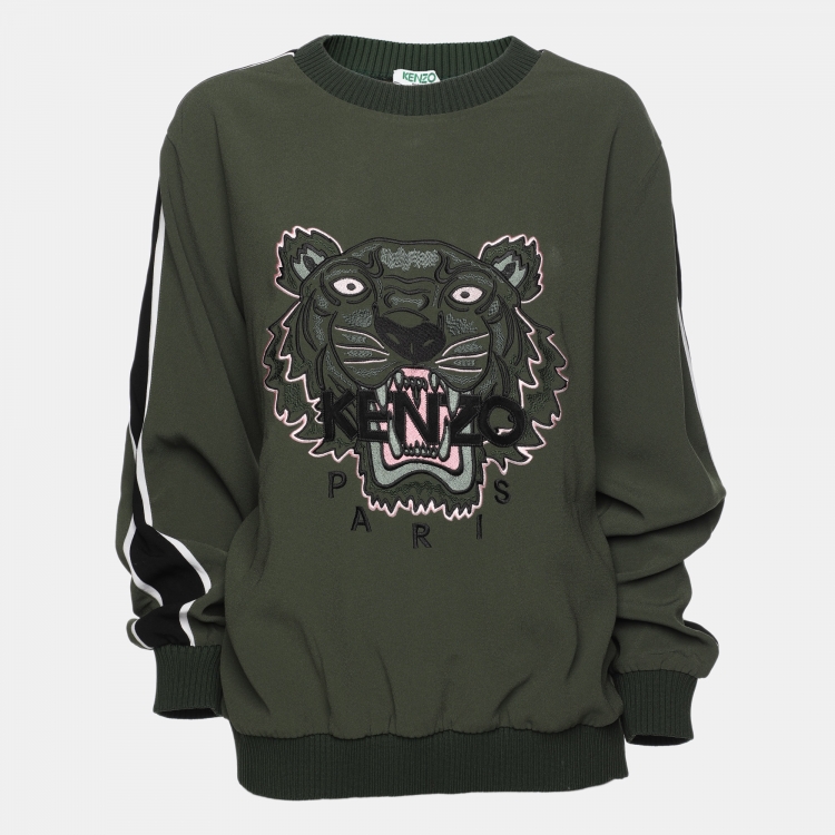 مملوكة مسبقًا Kenzo Olive Green Crepe Tiger Motif Detail Sweatshirt L