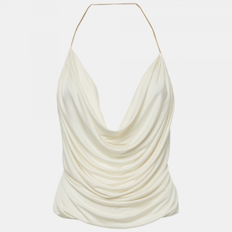 Pre Owned بلوزة لويفي كريمية بياقة متدلية وسلسلة بتصميم درابيه مقاس متوسط - ميديم