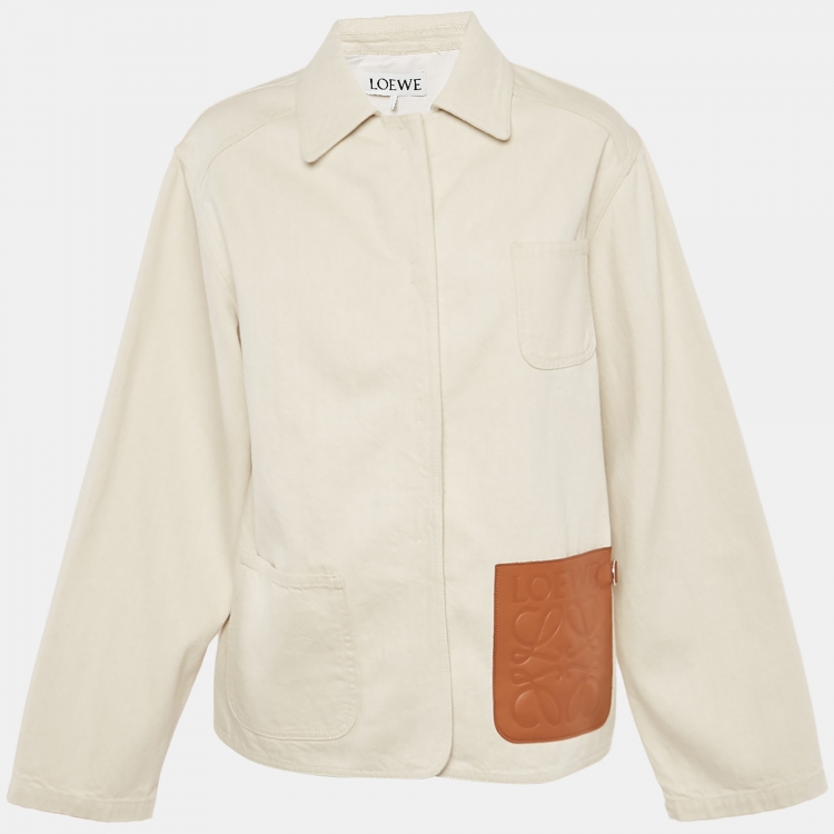 Pre Owned جاكيت لوفي دنيم بجلد شارات بلون الإكرو للأعمال مقاس صغير (سمول)