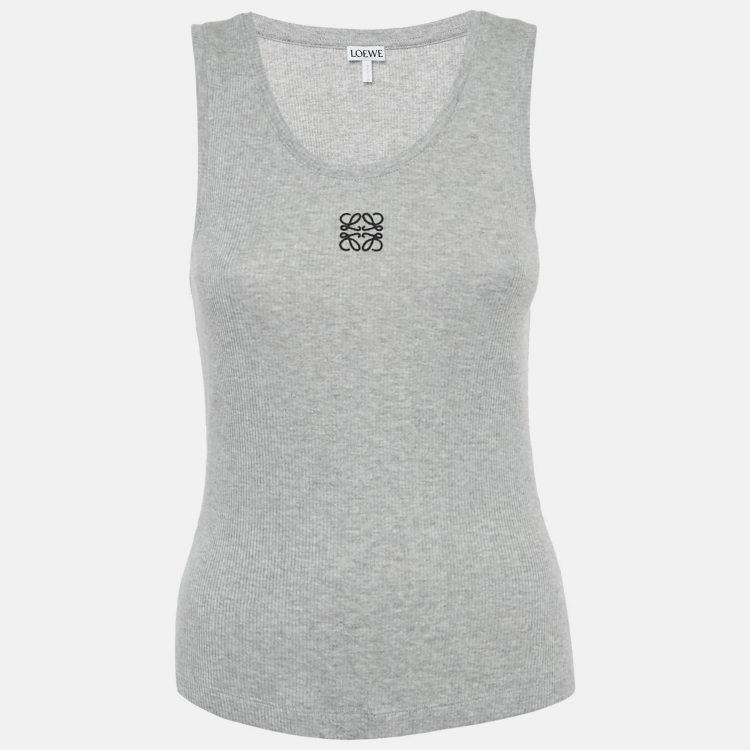 Pre Owned بلوزة مضلعة حياكة بتطريز أناجرام رمادي من لوفي مقاس متوسط