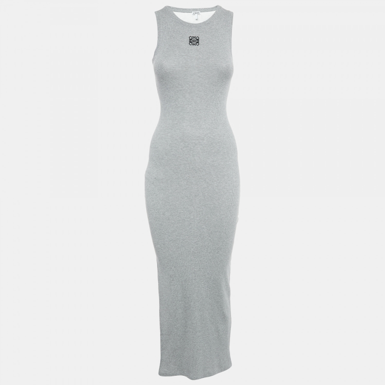 Loewe Grey Angaram Embroidered Rib Knit Maxi Dress XS