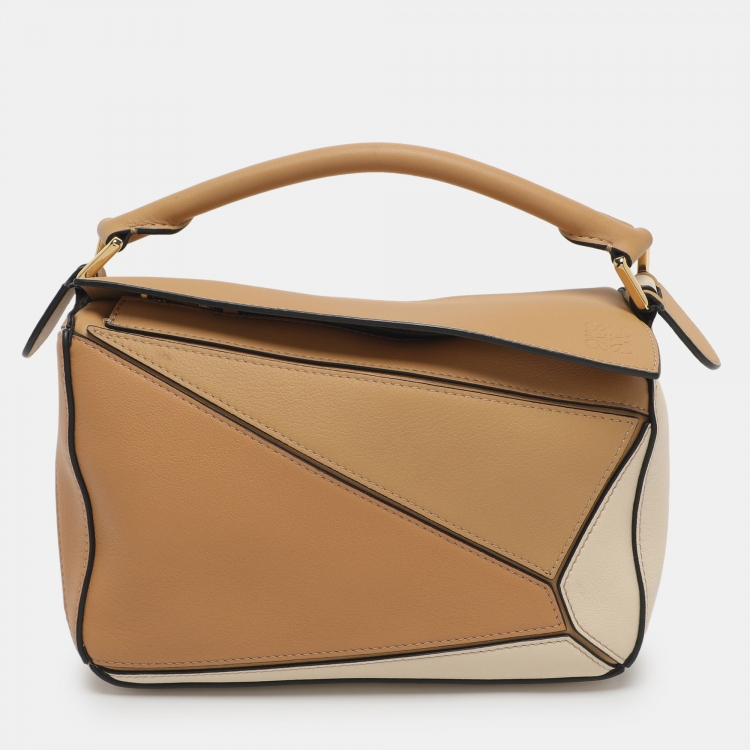 مملوكة مسبقًا حقيبة كتف لويفي "بازل" صغيرة جلد بيج