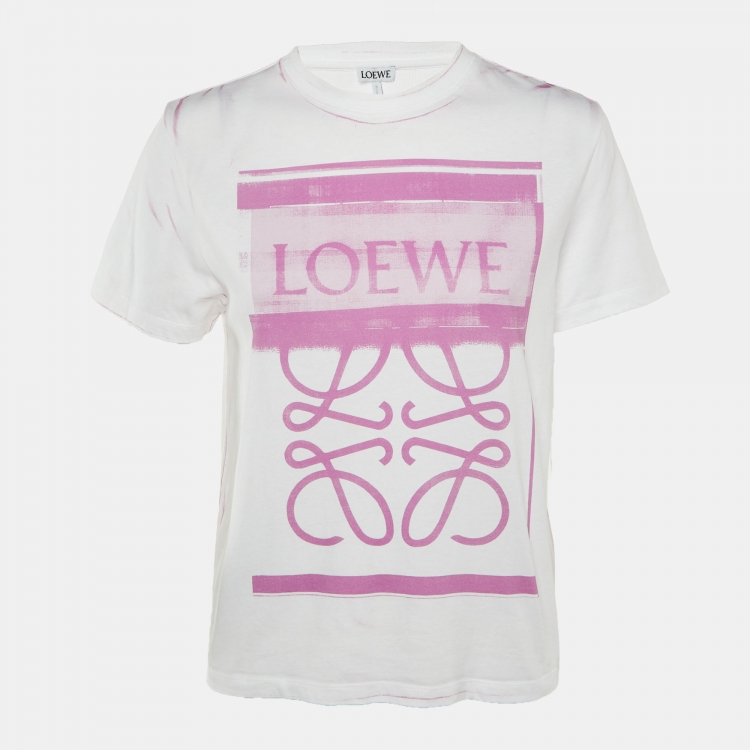مملوكة مسبقًا تي شيرت لويفي أبيض قطن بطباعة رقمية بأناجرام رقبة دائرية مقاس متوسط - ميديام