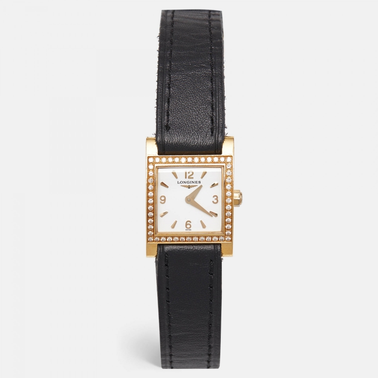 مملوكة مسبقًا ساعة يد نسائية لونجين دولتشي فيتا L5.166.7.16.2 ذهب أصفر 18 قيراط ألماس جلد أبيض 21 مم