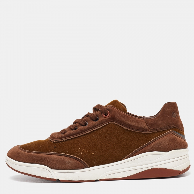 مملوكة مسبقًا Loro Piana Brown Nubuck Leather and Wool Newport Lace Up Sneakers Size 41