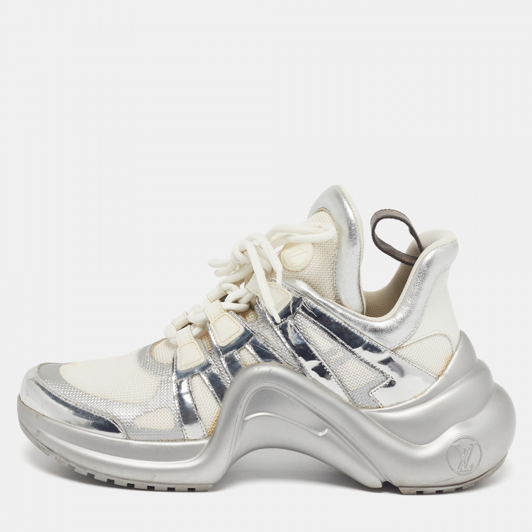Pre Owned حذاء رياضي لوي فيتون أرش لايت  LV شبك وجلد أبيض / ذهبي مقاس 38.5