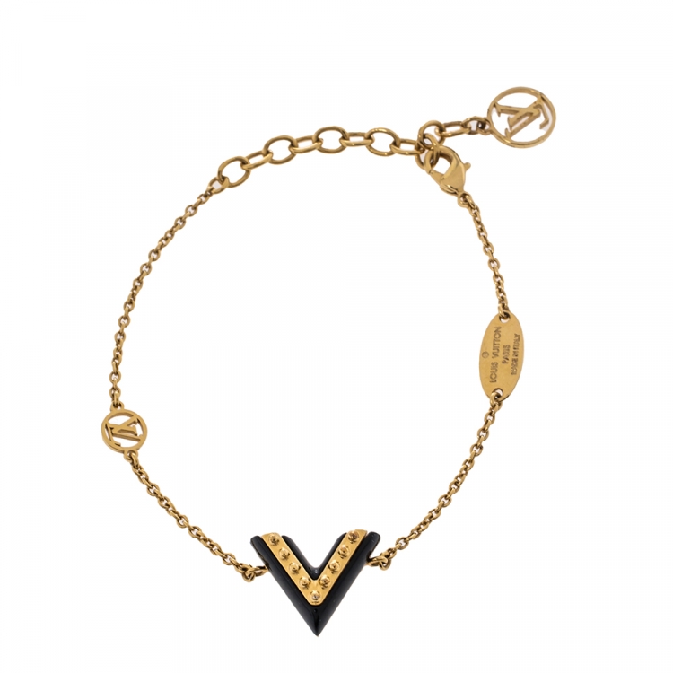 Pre Owned سوار لوي فيتون وصلة سلسلة حرف في إسنشيال مرصع مطلي أسود